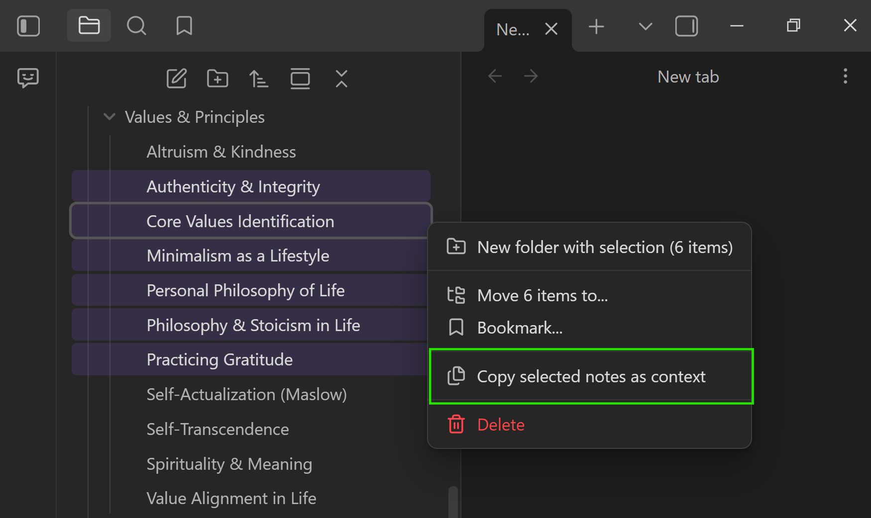 - In the Obsidian file explorer, select 2+ notes.