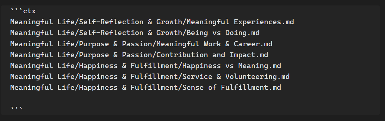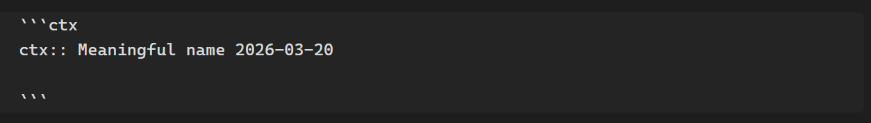 The smart-context codeblock turns a note into a visible context manifest.