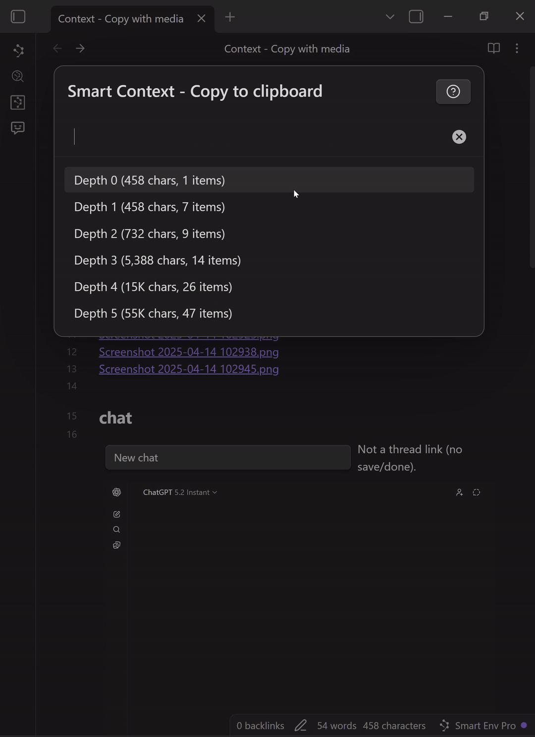 - Open the Smart Context clipboard flow (current note, selected notes, or folder).