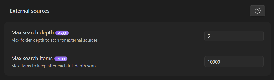 PRO. Limits how many folder levels deep Smart Context will scan for external sources.