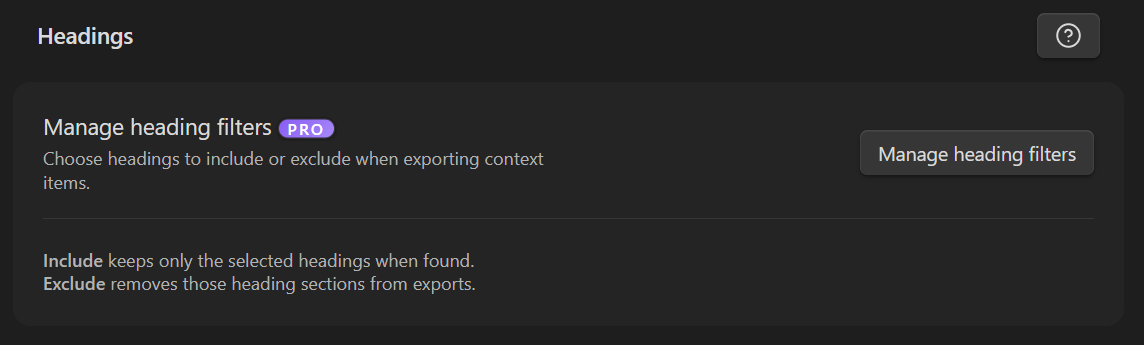 Smart Context can include or exclude specific headings when copying context items.