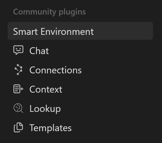 Smart Environment is the shared local layer that powers Smart Plugins. It loads shared sources, models, settings, events, and status once so Smart Connections, Smart Context, Smart Chat, Smart Templates, and companion plugins can work from the same environment.