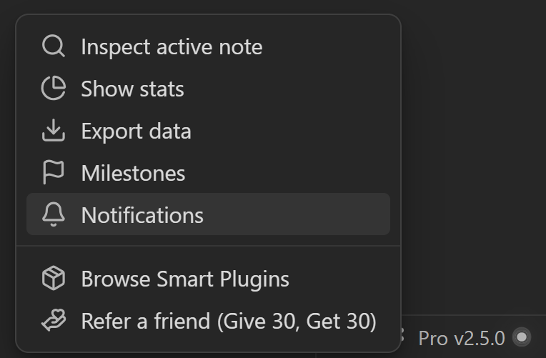 The Substrate Update makes significant changes to the surface, or substrate, on which the Smart Plugins exist. Changes are focused around the integration points, like the use of Obsidian native notifications.